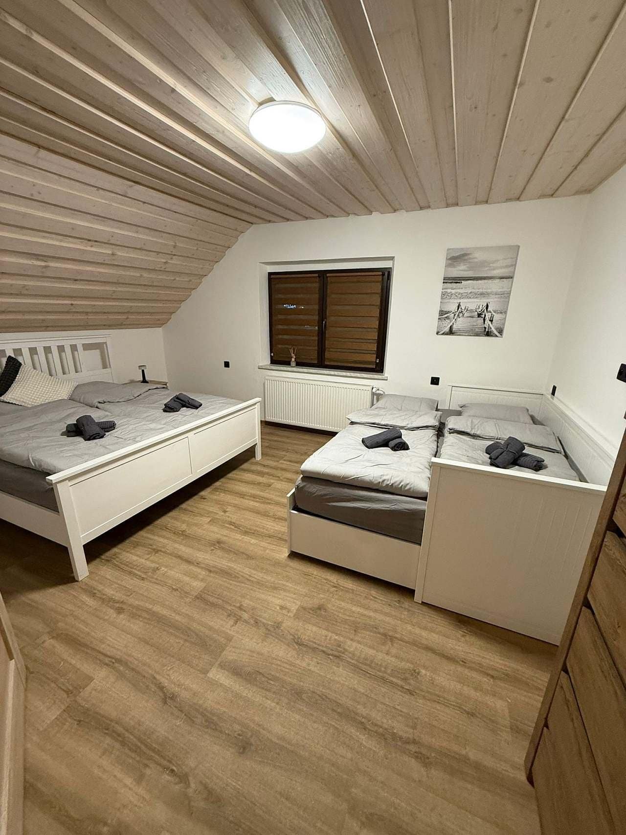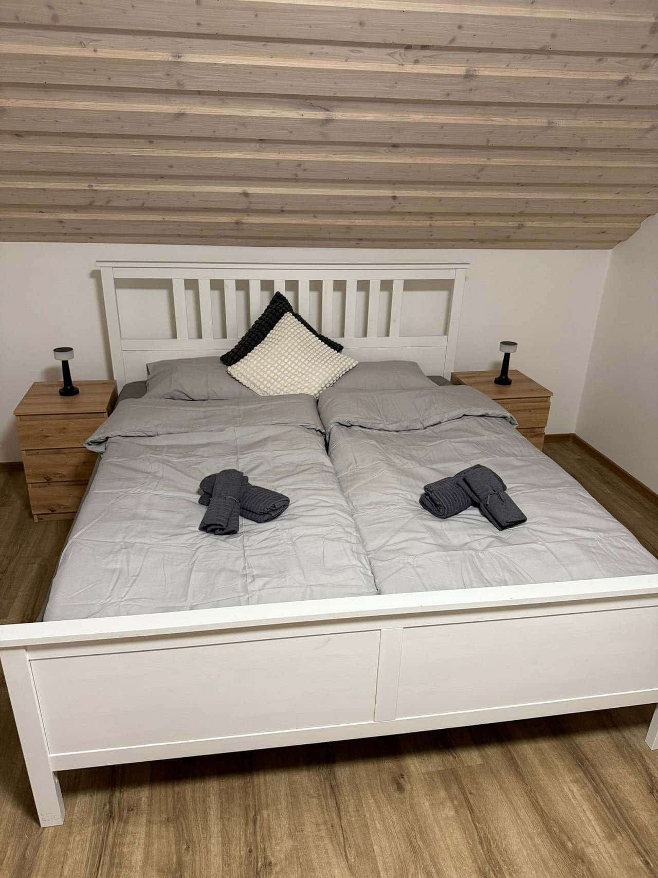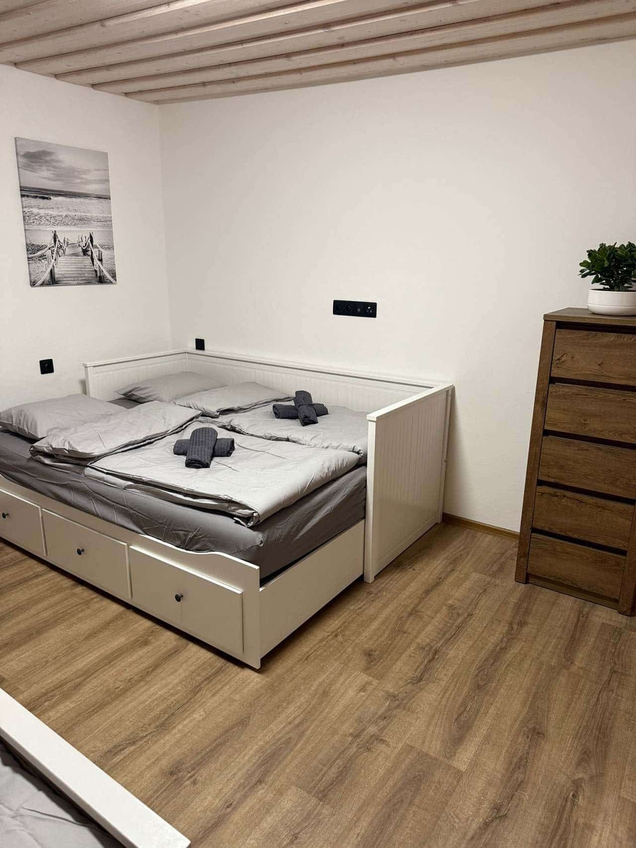 2. ložnice: Dvě prostorné dvoulůžkové postele (180x200 cm) + možnost dětské postýlky.