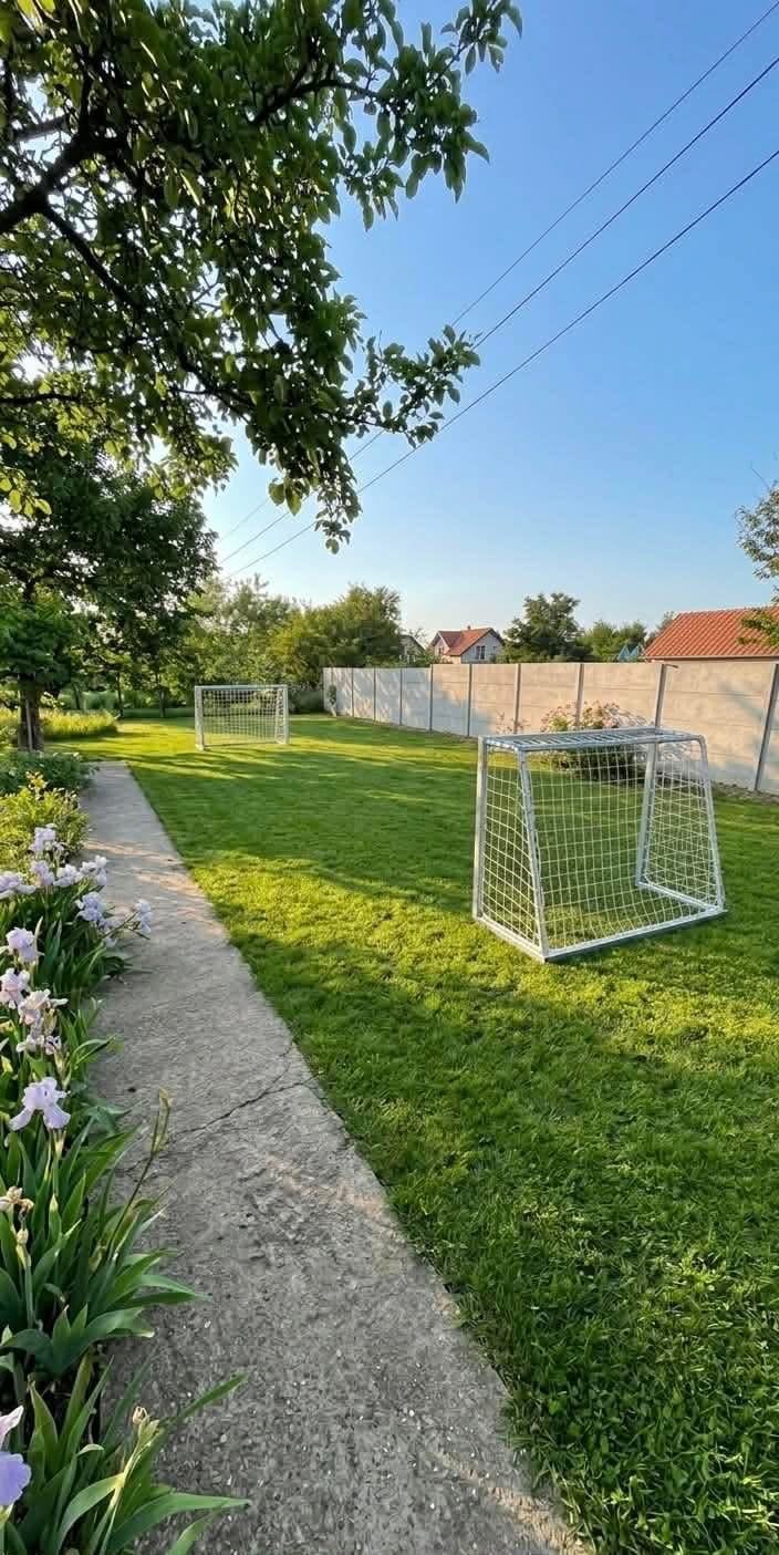 Venkovní část nabízí zahradu s posezením, grilem, ping-pongem a fotbalovými brankami, což zajišťuje vyžití pro děti i dospělé.