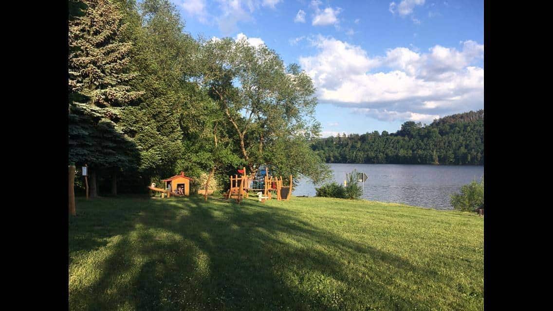Lokalita: Jen 60 metrů od travnaté pláže s mírným, písčitým vstupem do vody.