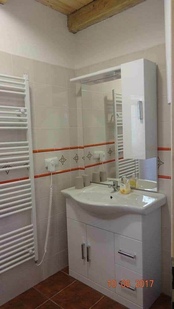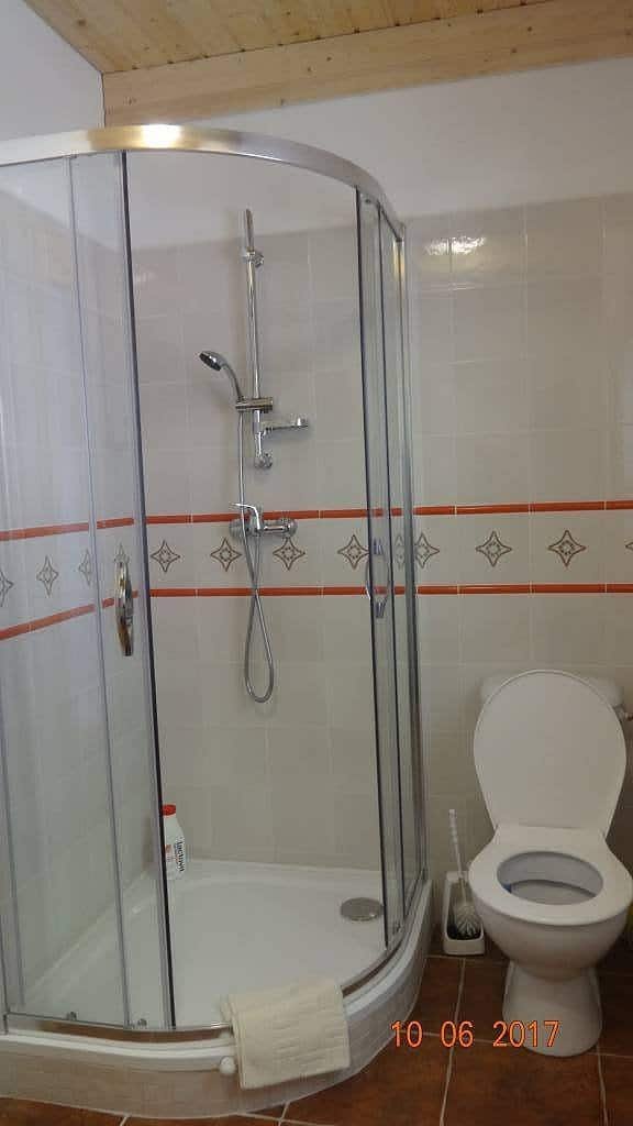 Druhá koupelna: Sprchový kout a WC. Obě podkrovní ložnice jsou pro váš komfort klimatizovány.