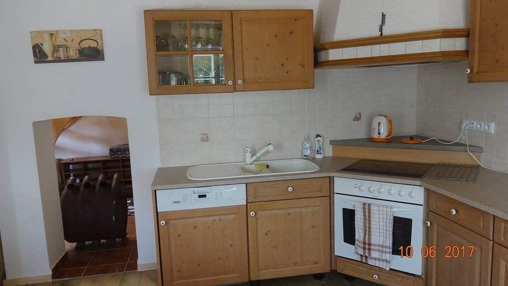 Kuchyňské zázemí: K dispozici je veškerá technika pro náročné vaření (el. trouba, mikrovlnka, myčka, velká lednice).