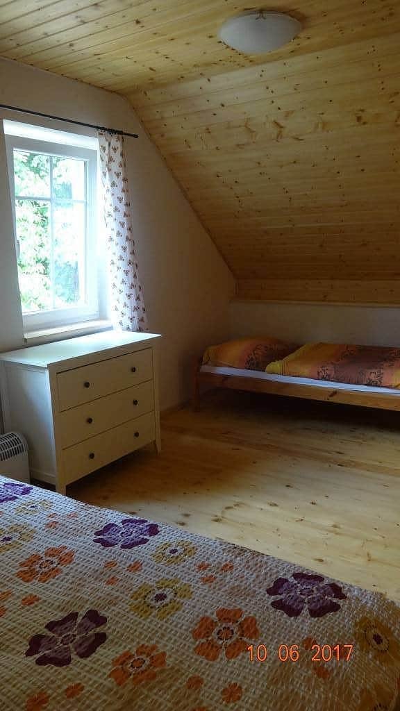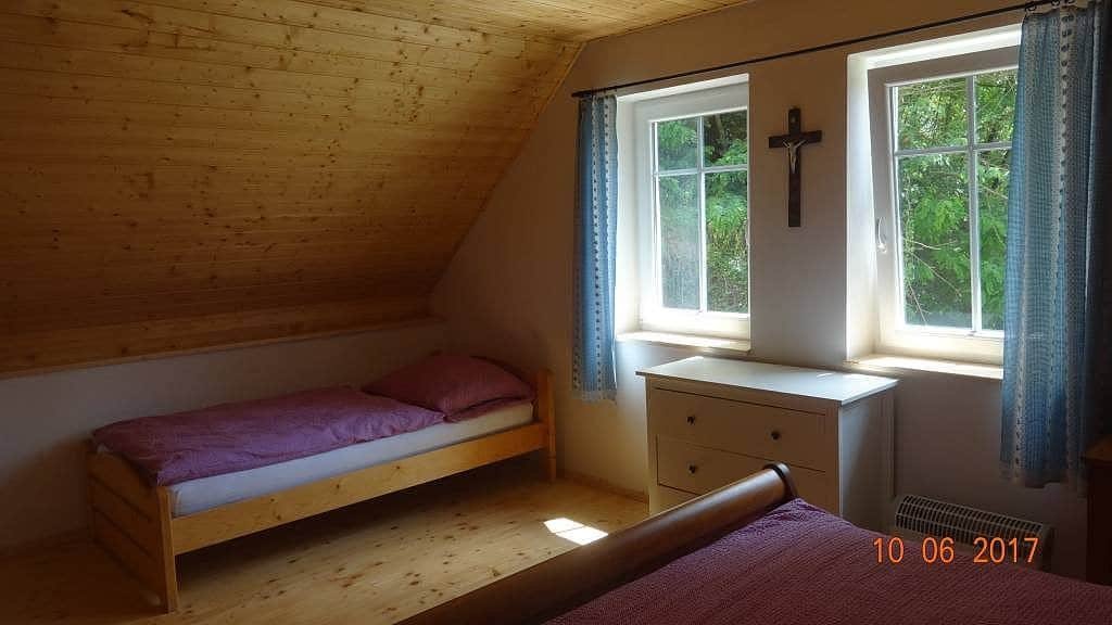 Ložnice č. 2: Kapacita 4 osoby (manželská postel + dvě samostatná lůžka).