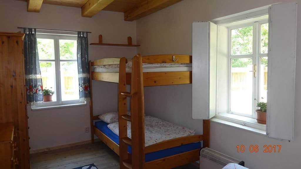 Ložnice č. 1: Kapacita 4 osoby (manželská postel + palanda pro děti).