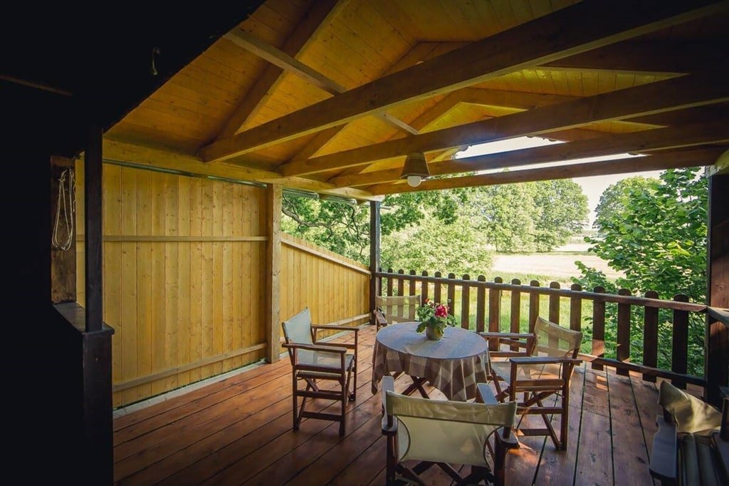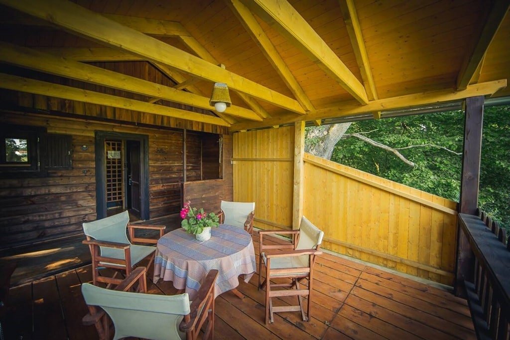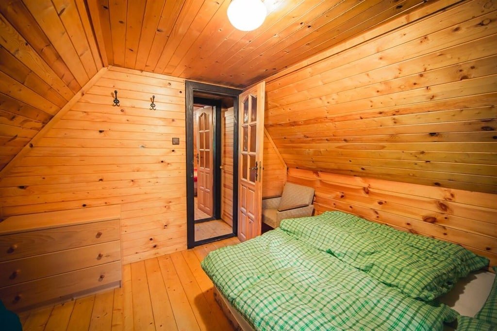 Tento klasický dřevěný srub (Val ev. č. 30) kombinuje poctivou atmosféru dřeva s moderním a kvalitním vybavením. Do chaty vstoupíte přes prostornou zastřešenou terasu, která je jako stvořená pro ranní kávu s výhledem.