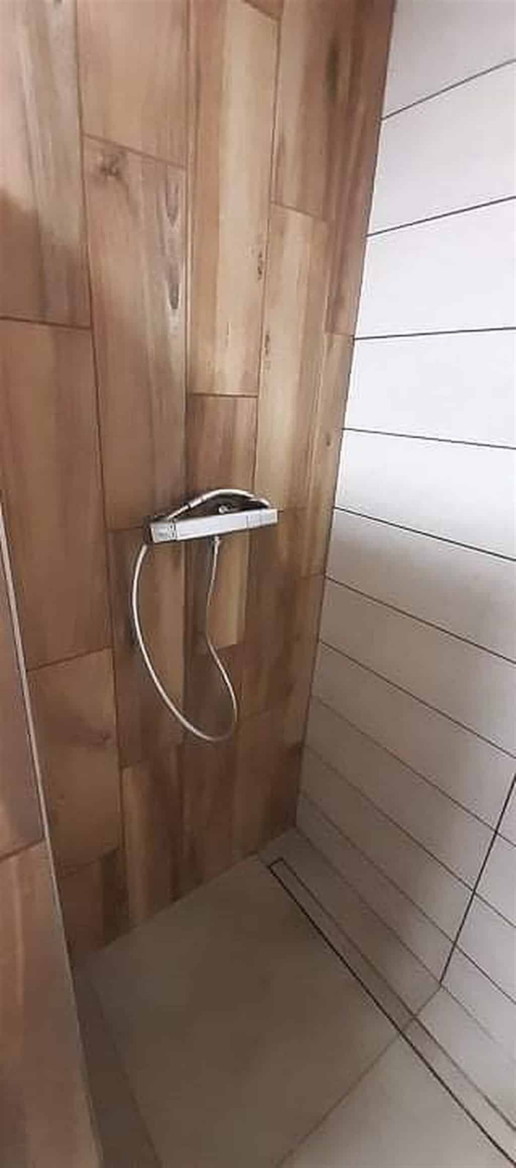 sprcha a umyvadlo, elektrický řebříčkový radiátor a vyhřívaná podlaha
