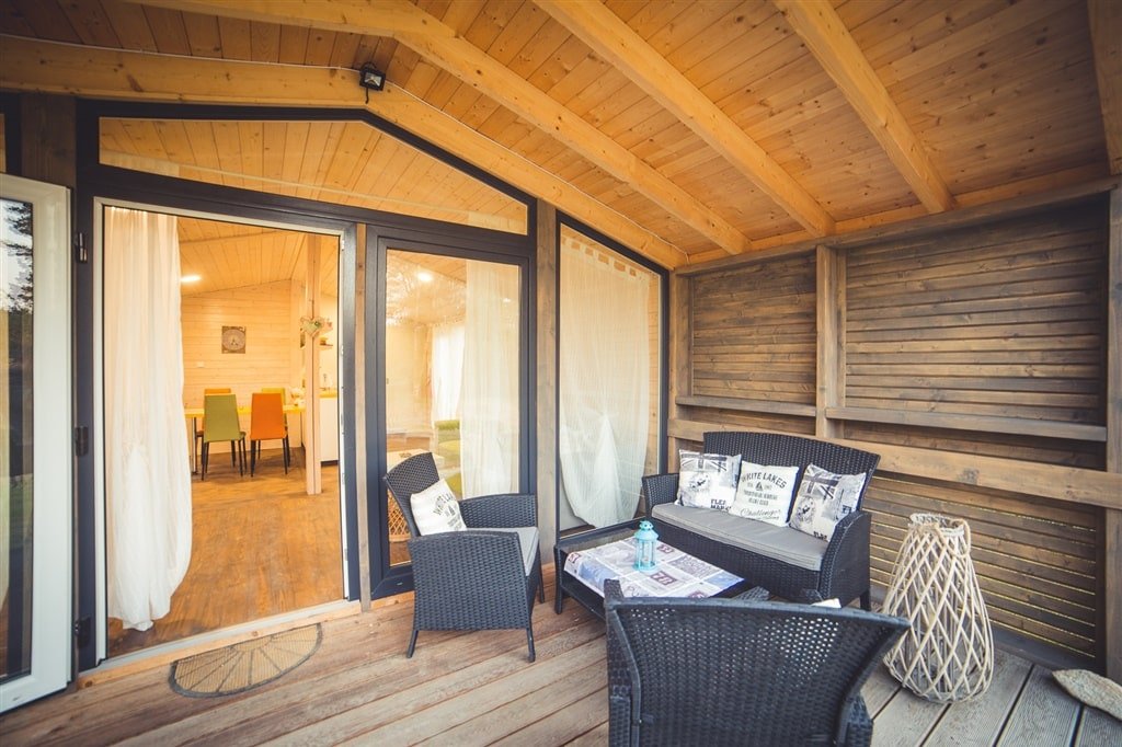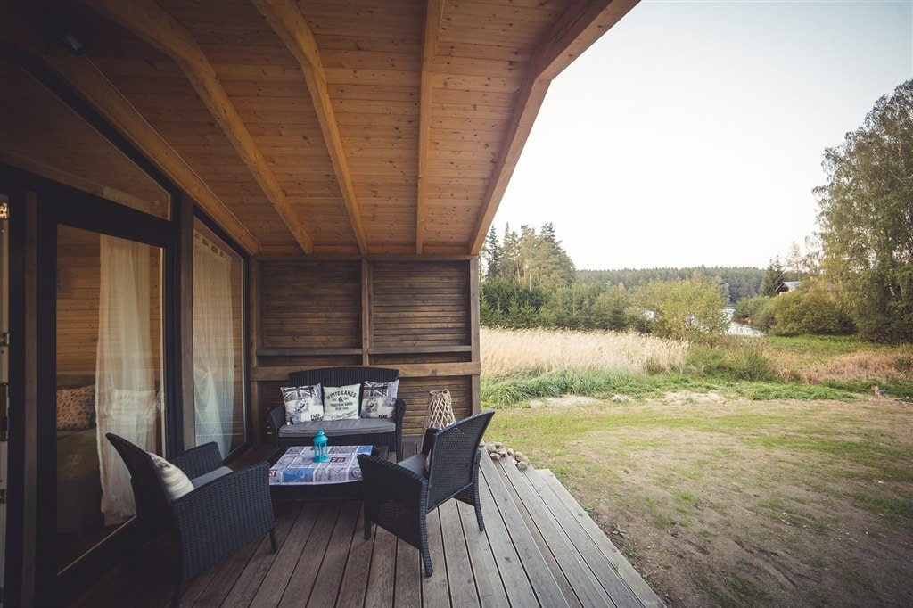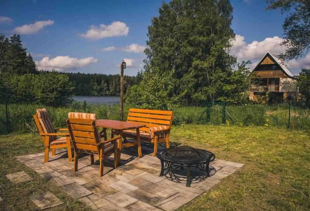 To nejlepší na vás ale čeká venku – prostorná terasa s posezením nabízí úchvatný výhled na vodní hladinu. K chatě patří také soukromé dřevěné molo s loďkou, ideální pro romantické vyjížďky nebo osvěžující koupání.