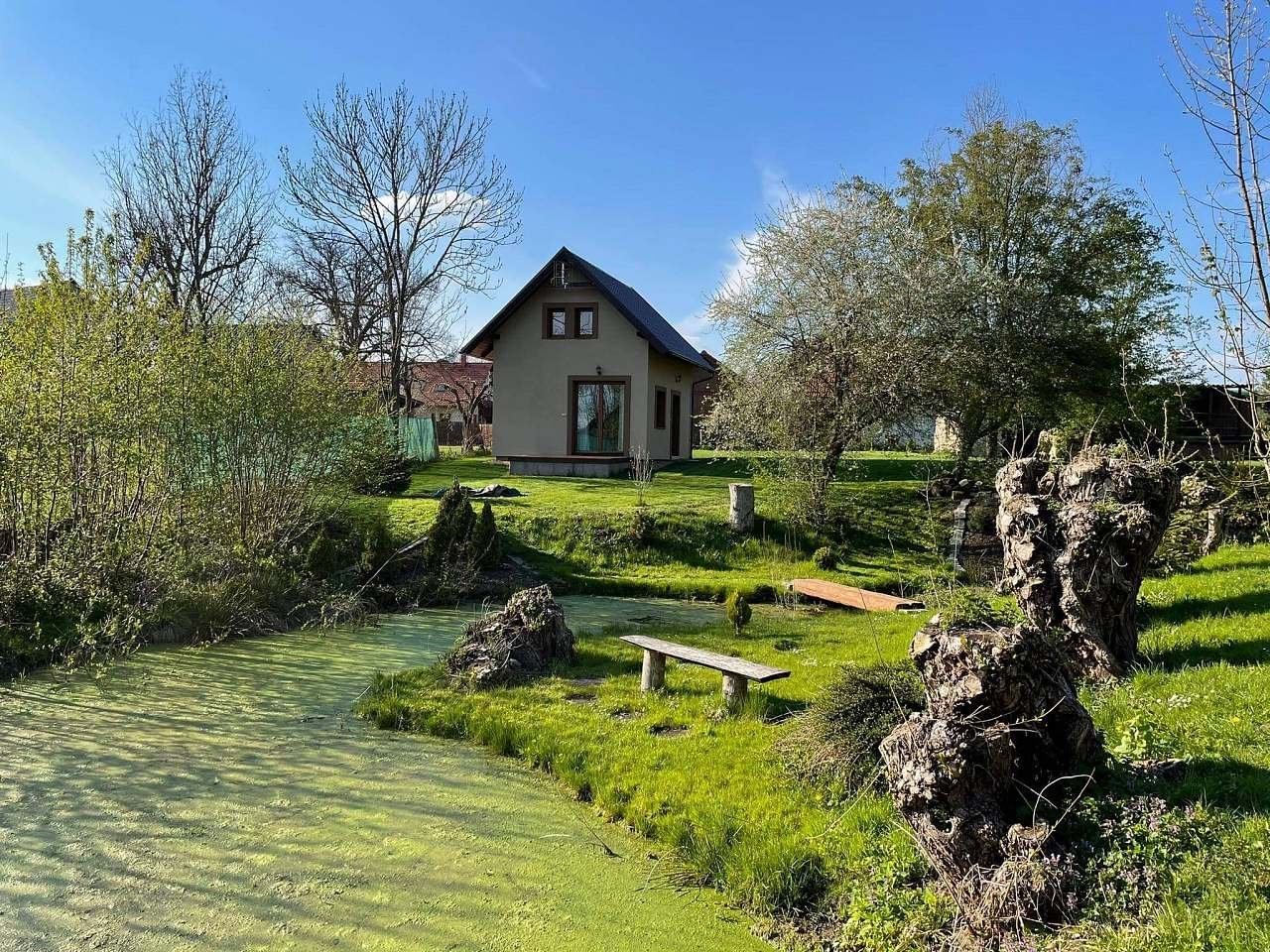 Pronajměte si novostavbu menší chaty v klidné lokalitě Osek u Sobotky. Hlavním lákadlem je prostorná oplocená zahrada s vlastním rybníkem (možnost zapůjčení rybářského náčiní) a menším bazénem.