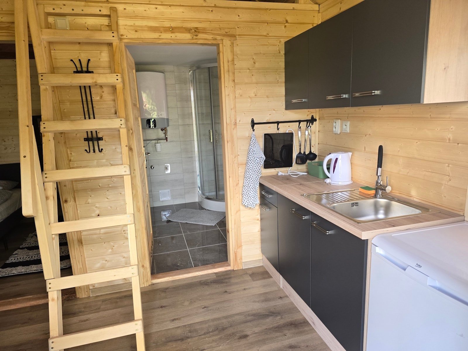 Chatky sú pre 4 osoby. Majú jednu poschodovú posteľ a dvoj posteľ. K dispozícií je kuchynský kút so základným vybavením, chladnička, ohrievač, posteľné prádlo, vonkajšie sedenie a gril. Voda je pred chatkou. Ubytovní využívajú centrálne sociálne zariadenie aj centrálnu kuchynku.