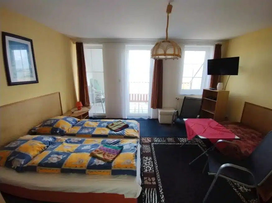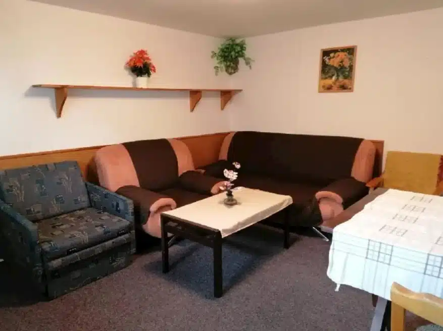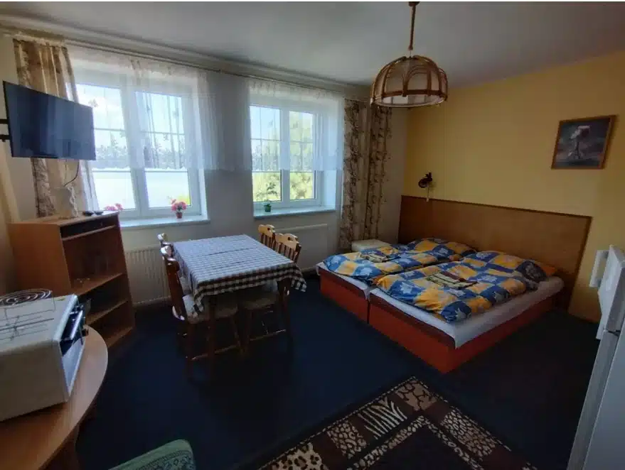 1× 5lůžkový bezbariérový apartmán (2 ložnice, obývák, kuchyně, terasa) - velmi vhodné pro rybáře, přízemí, s přímým vstupem z terasy.