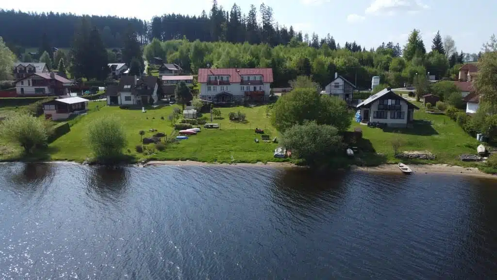 Objevte kouzlo ubytování v malebné lokalitě Jestřábí, jen 2 km od Černé v Pošumaví. Penzion Dominant se pyšní výjimečnou polohou – leží na rozlehlém vlastním pozemku přímo u břehu Lipenského jezera. V těchto místech dosahuje nádrž šířky až 12 km, což z ní činí ráj pro milovníky jachtingu, surfování a rybaření.