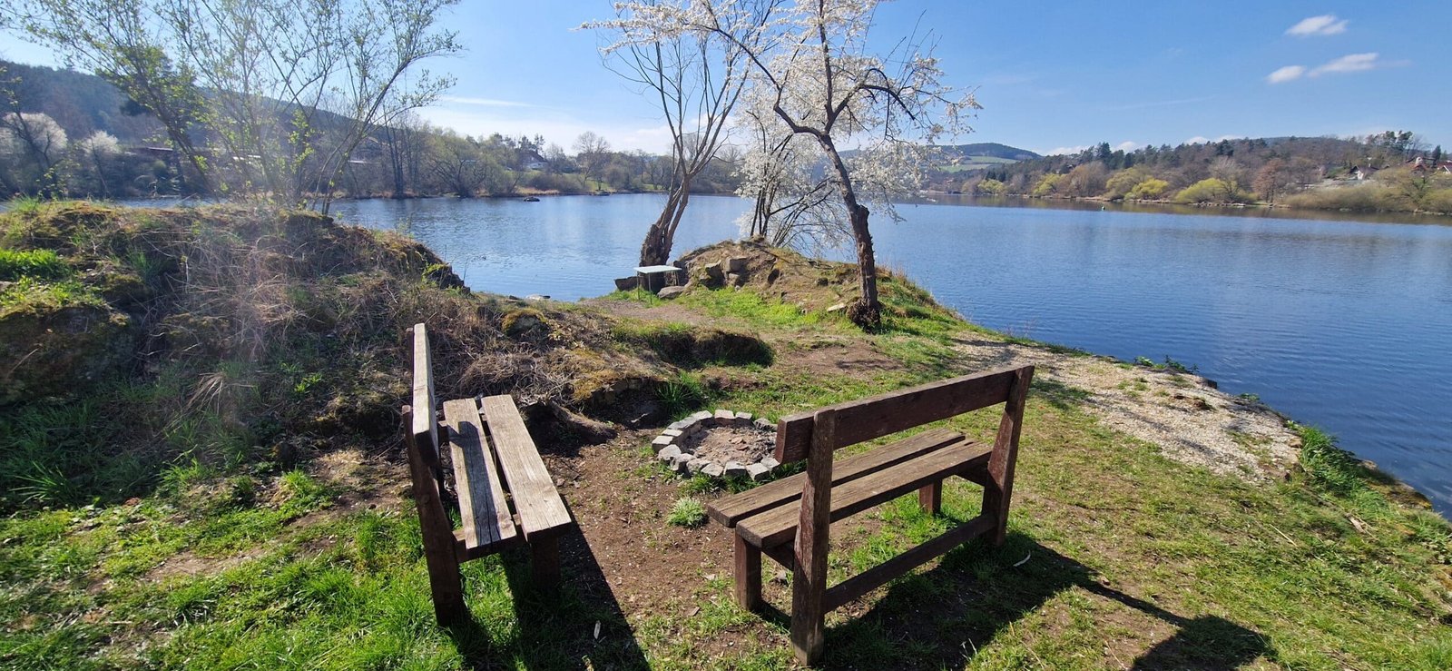 k zapůjčení: přenosný gril, venkovní ohniště, pramice s vesly