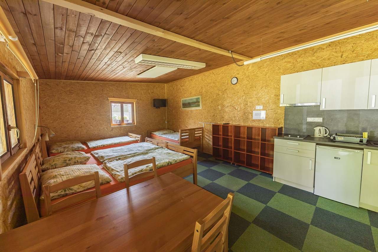 Apartmány, pokoje i chaty, srub s vlastním sociálním zařízením.