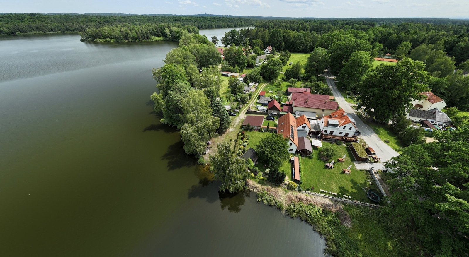 Naše dva nově postavené rodinné domy s obytným podkrovím, apartmány v přízemí a chatou s vlastním sociálním zařízením a venkovním posezením se nacházejí přímo na hrázi, v těsné blízkosti rybníka Staňkov.